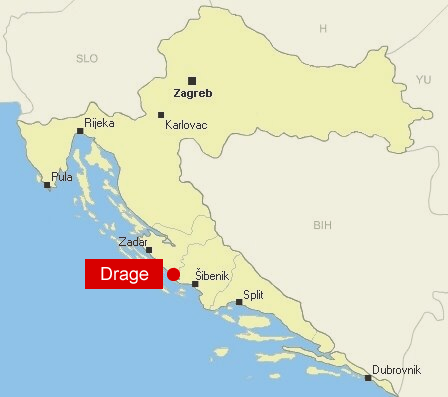 Drage egy békés, csendes falu Horvátországban, az Adriai-tenger partján, Pakoštane közelében. A település Zadar és Sibenik közötti félúton fekszik, melyek híres dalmáciai üdülőhelyek és megyeszékhelyek is egyben. Aki mozgalmasabb helyre vágyik, élénk éjszakai élettel és modern diszkókkal, annak autóba kell ülnie, azonban Drage kiválóan alkalmas kipihenni a fáradalmakat. Az apartmantól kb. 200 m-re található a strand, kiépített betonozott felületekkel, apró kavicsos partszakaszokkal. Említésre méltó a kis település kikötője is. Este ez a nyugalom és pihenés szigete, valamint azok kis paradicsoma, akik a kis hajók ki- és befutását szeretik nézegetni.